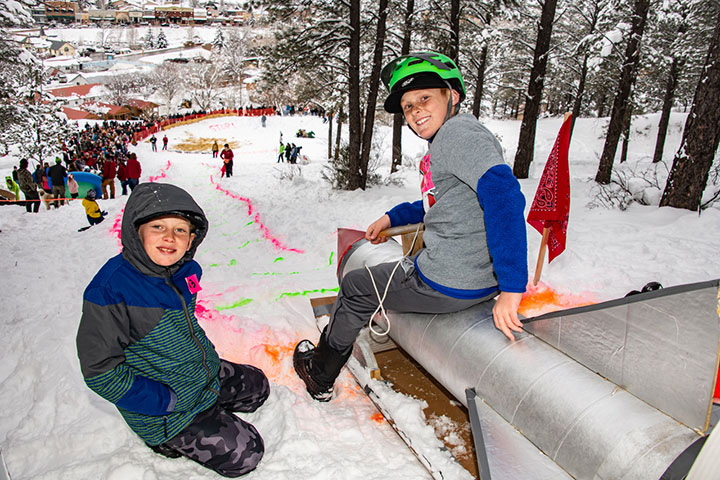 Sleds can only be constructed from cardboard, plastic sleds, inflatables (tubes and such), duct tape and other decorations.